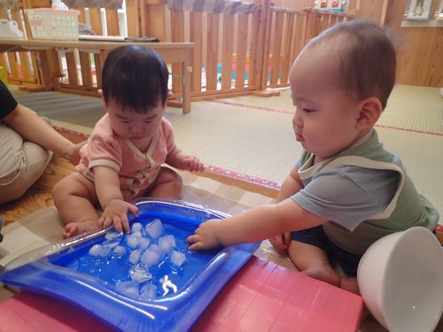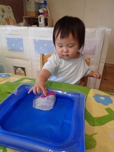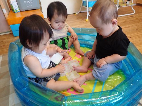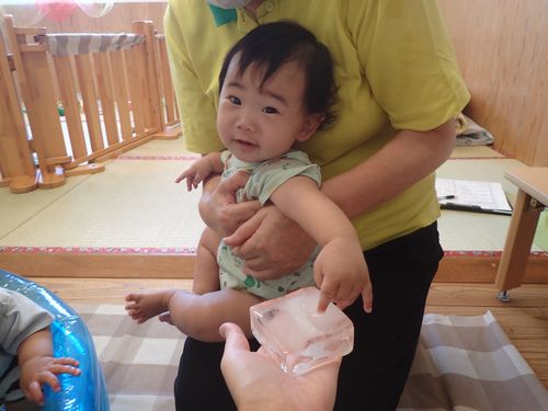 氷に触れたりして夏を感じられるような遊びを楽しみました。