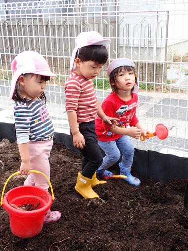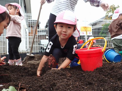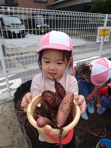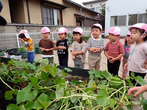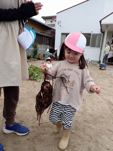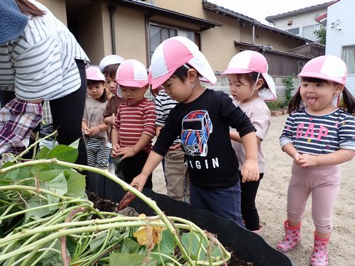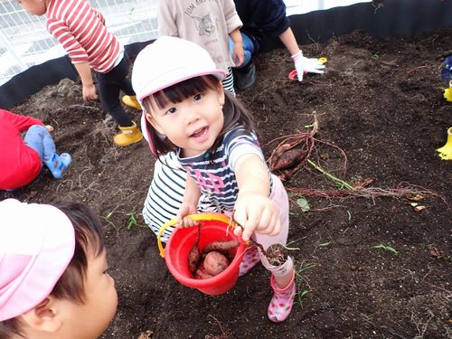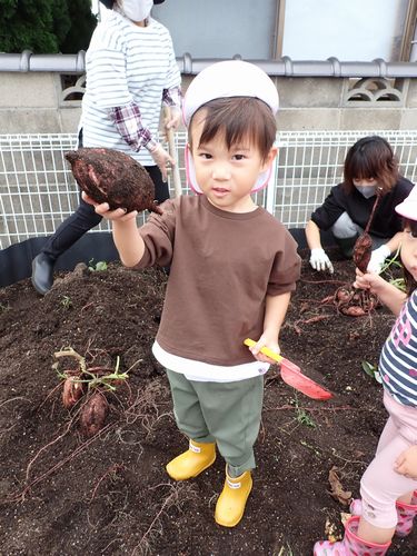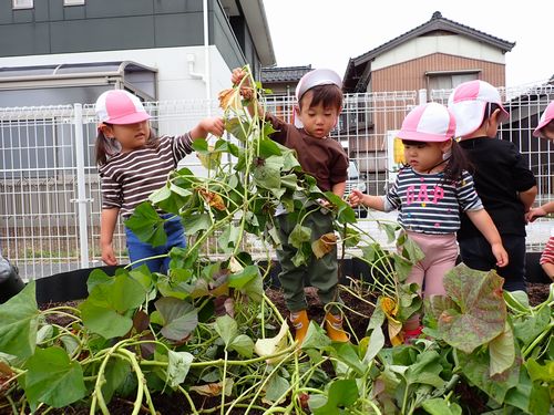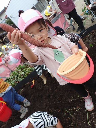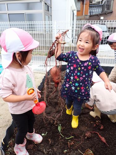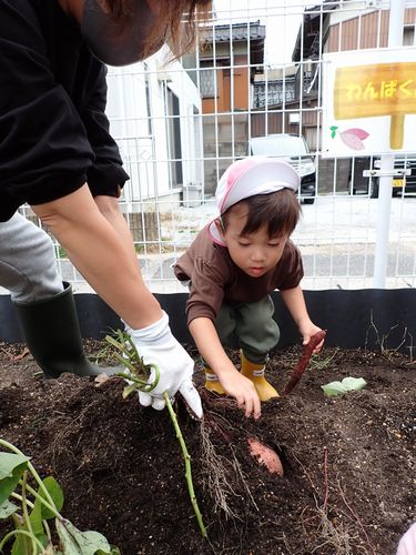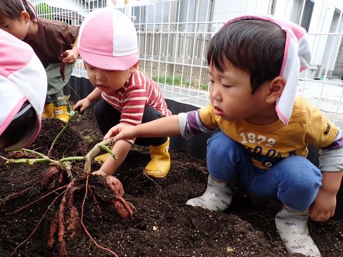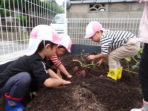 5月にうさぎ組のみんなで植えたさつまいもの収穫を6日に行いました。
