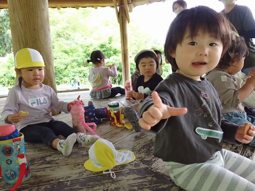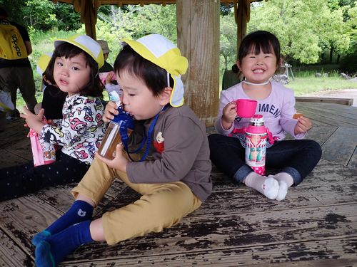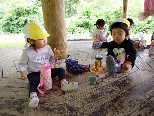 外で食べるおやつは格別のようでした。