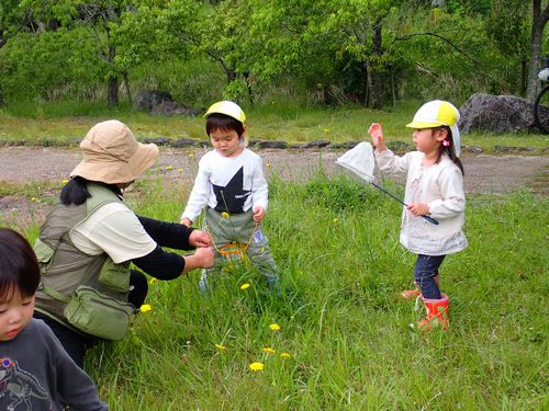 自然たっぷりの中でのびのびと遊んだ子どもたち。