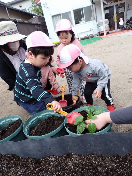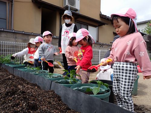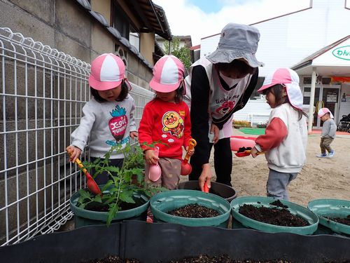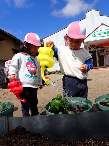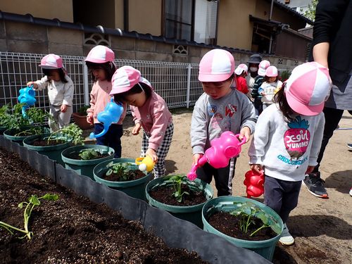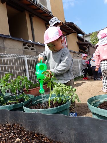 「もう一回する~!」とはりきって水やりをしてくれました。