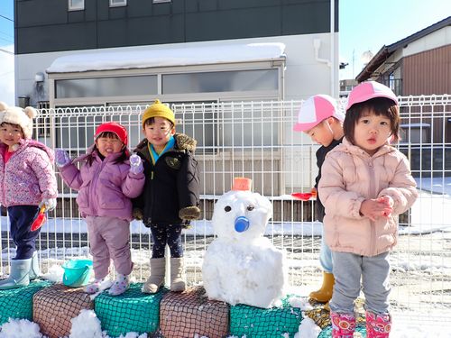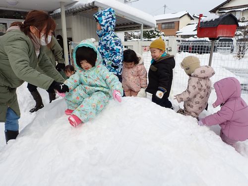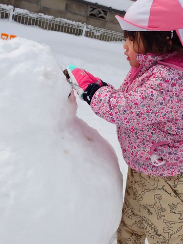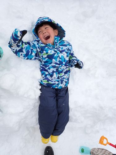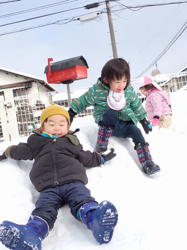 冬の自然の中でほほや鼻を赤らめながら思い切り色々な雪遊びを楽しみました。