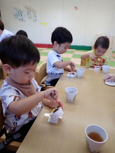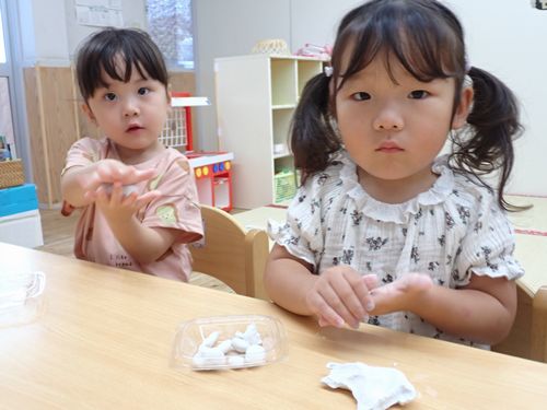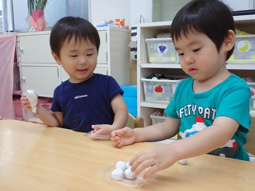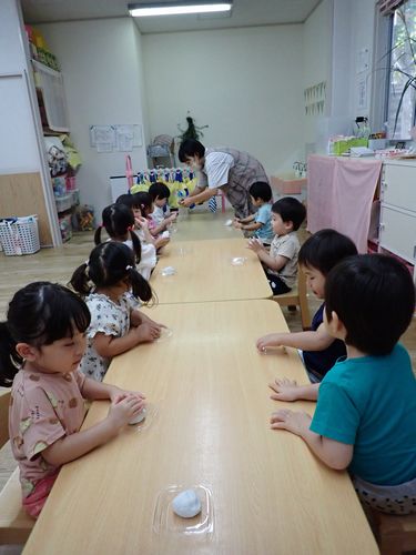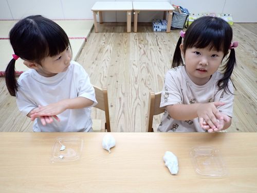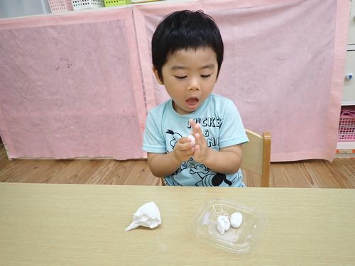 うさぎ組さんは紙粘土でお団子作りもしましたよ。