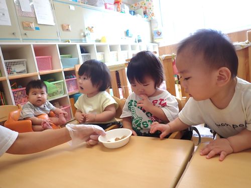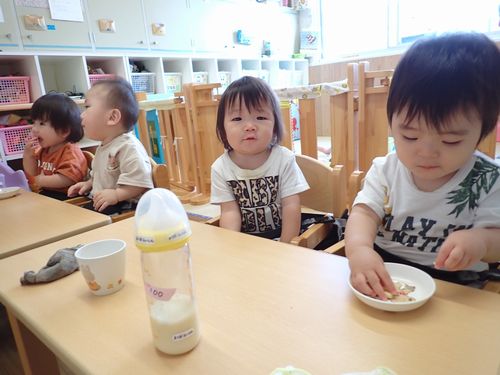 ひよこぐみのお友だちは一人ひとりに合わせた給食を食べています。