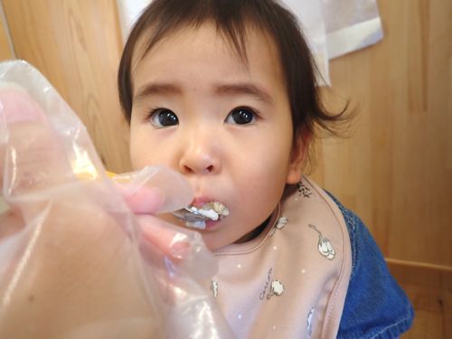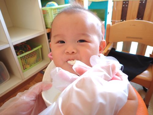 スプーンを近づけると、あ~んと自分から大きなお口をあけて食べようと意欲マンマンです!