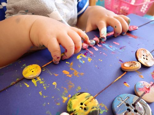 スポンジの感触を楽しみながらおててをギュッギュッ♪