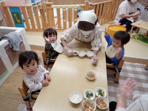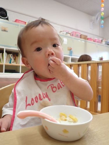 離乳食は、一人ひとりの食べ具合をよく見ながら進めます。