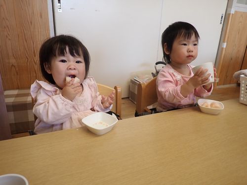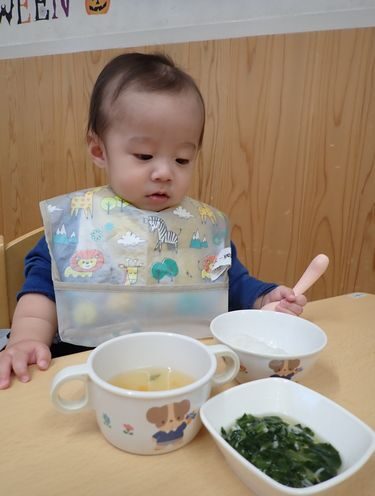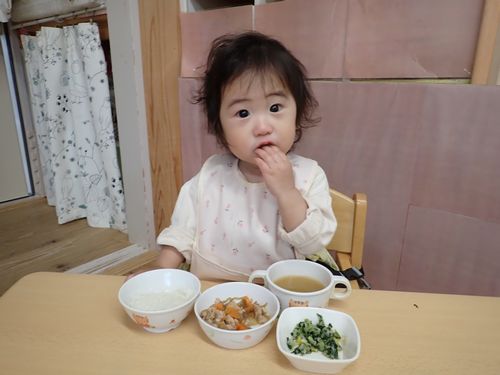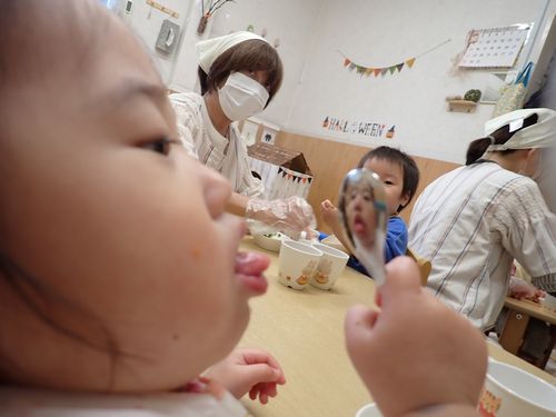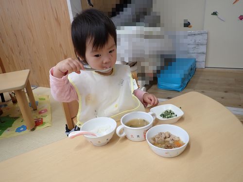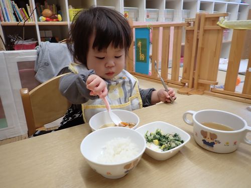 こぼさずに口に入れるのはとっても難しいけど、自分でいろいろ学びながらレベルアップしていく子どもたちです(^u^)