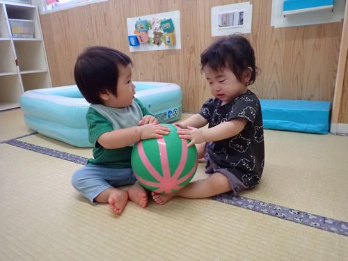 大きなボールを持って投げて楽しんだり、