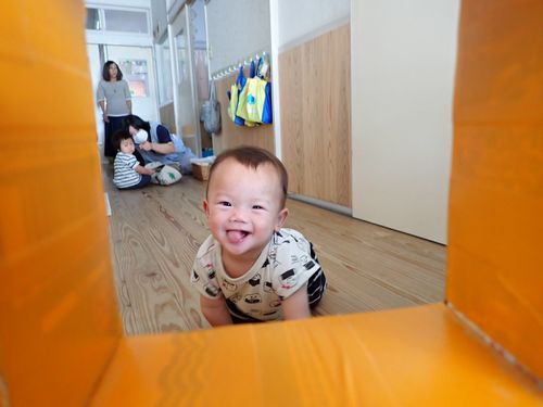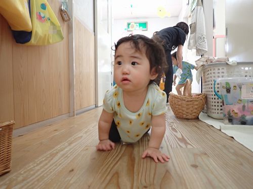 廊下も遊びのスペースに変身して、いつもと違う景色を楽しみながらハイハイをしたり、