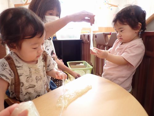 グニャグニャ ビヨ~ンと不思議な感触や形に真剣な表情や笑顔が!