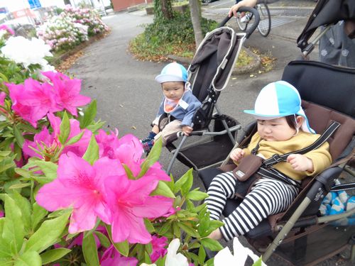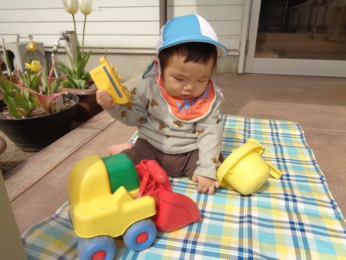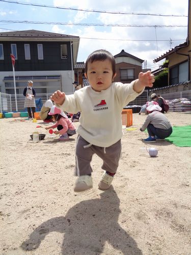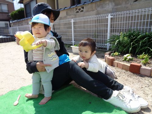 よちよちと歩いて探索をしたりして外あそびを満喫する2人でした。