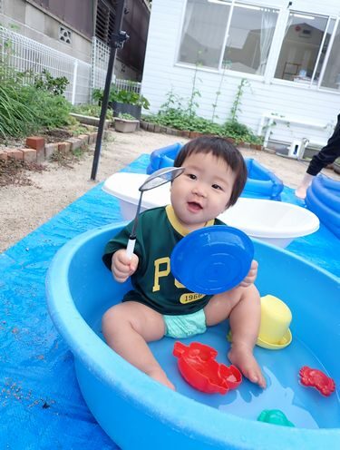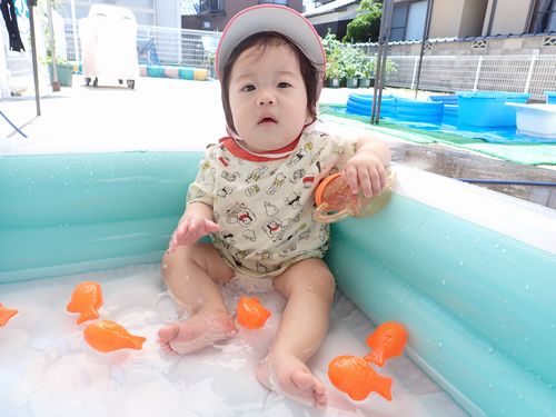 暑いのでお外で水遊びできる日は少ないのですが、気温と体調を見ながら楽しんでいます。