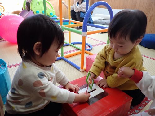 また上から入れて・・・をくり返し遊びを楽しんでいます。