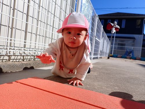 靴を履いたり、園庭を歩くことやハイハイしたりすることに抵抗があったお友だちも日に日に慣れてきて、