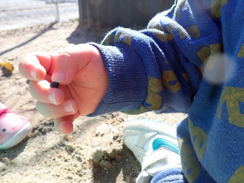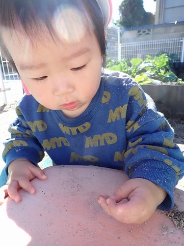 園庭に出ると砂を手や指を使って掴んだり、つまんだりして触れたり、
