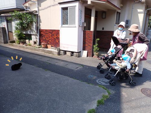 途中で電車を見たり、猫の集会に遭遇したりして目をキラキラさせていました。