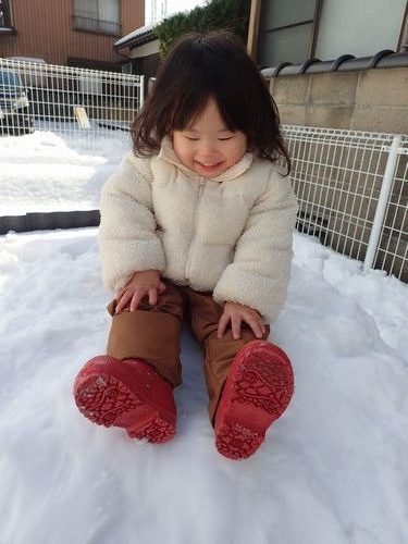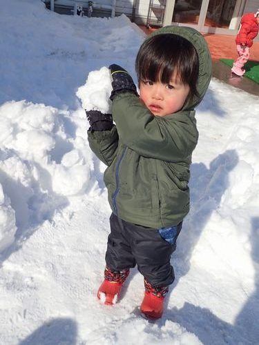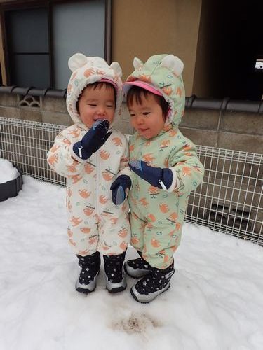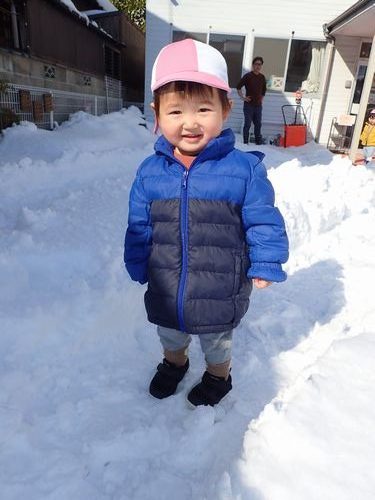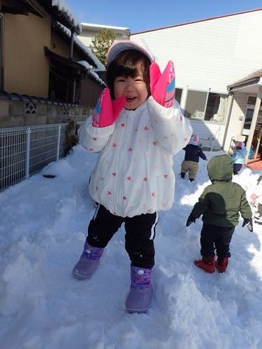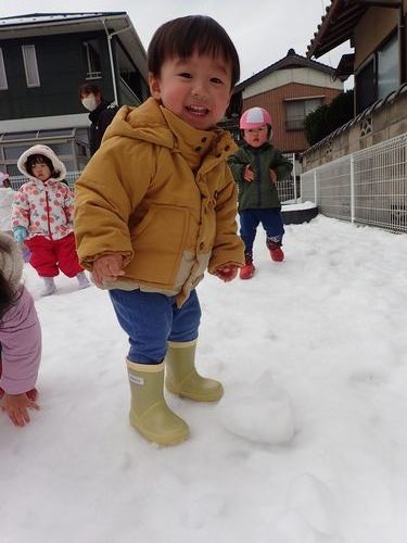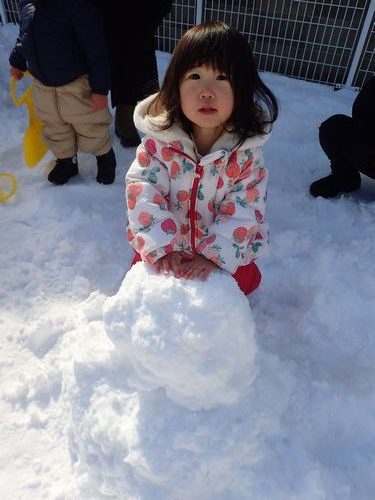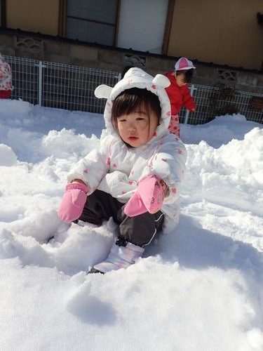 かわいいスノーウェアに着がえて早速雪あそび開始です。