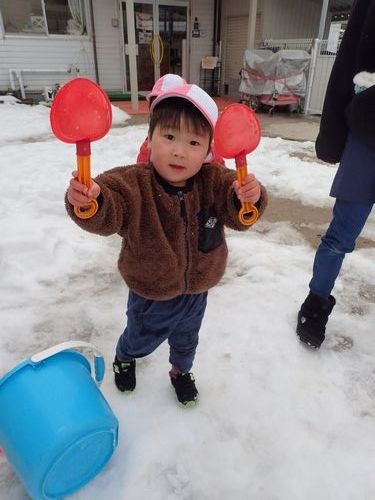 わんぱく保育園の園庭を「ゆきのぺんきやさん」が真っ白にしてくれました。