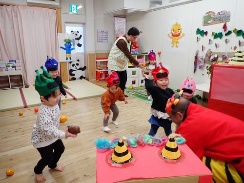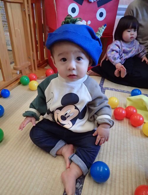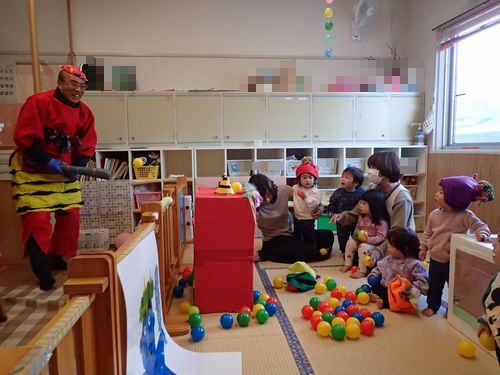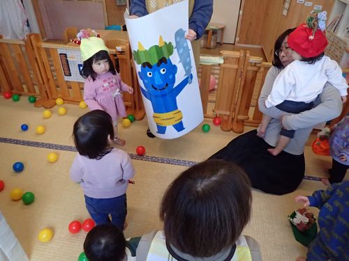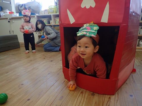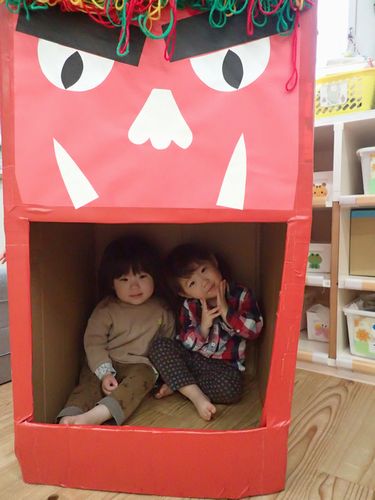 ひよこ組さんは段ボール鬼や大きな鬼のイラストにドキドキ。。。