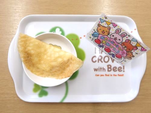 誕生月のお友達は、午後のおやつを「おたんじょうびおめでとうランチョンマット」と「お祝いピック」でいただきます♪