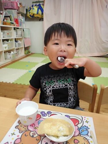 口いっぱいにクリームをつけながら食べている姿がとってもかわいかったです(*^-^*)